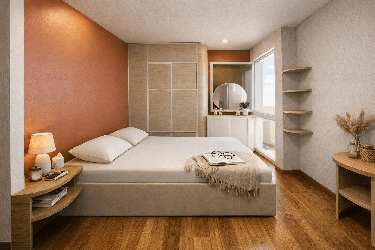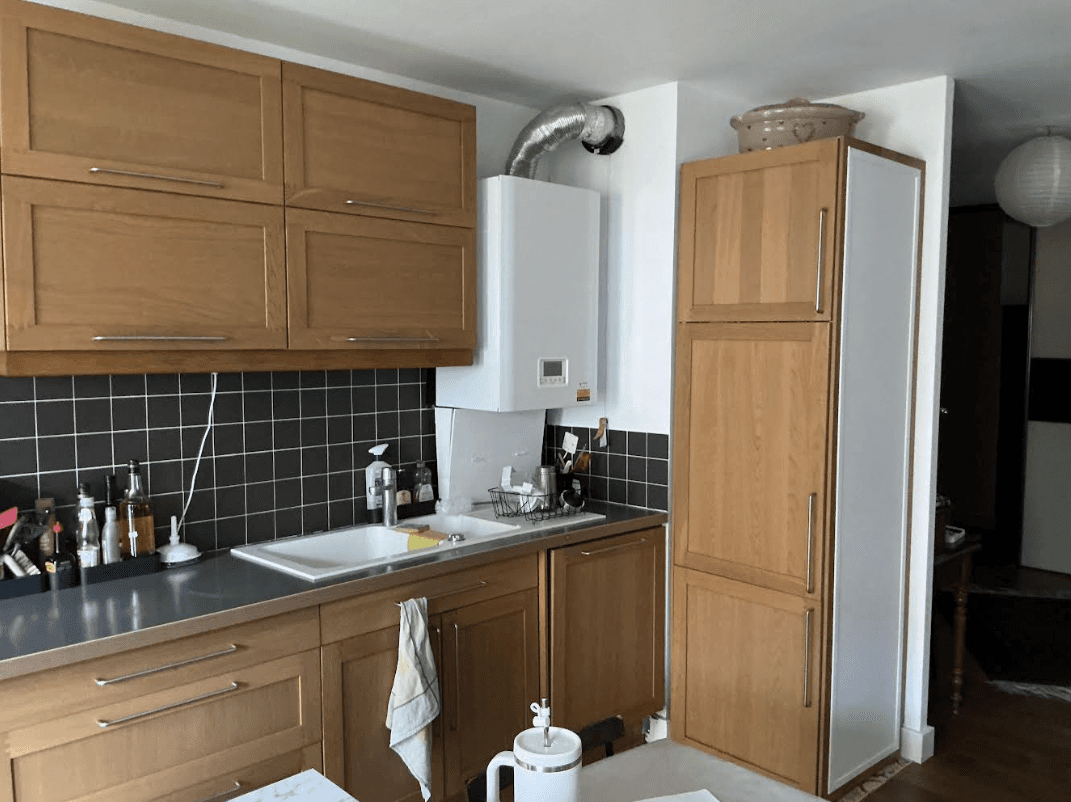 L’appartement d’origine présentait des espaces fonctionnels mais manquait d’harmonie et de fluidité dans la circulation. L’enjeu était de moderniser la cuisine, de repenser la chambre et d’optimiser la salle de bain tout en créant un intérieur fluide, confortable et élégant.